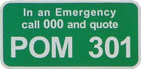 When reporting an incident to 000, look for the nearest green Emergency Marker and quote the locality code (e.g. POM 301, see right) to help establish your location.